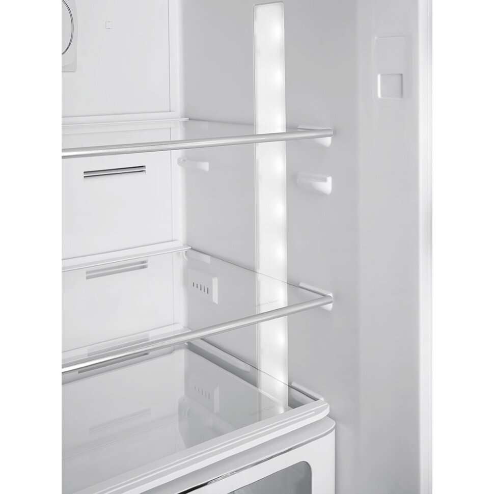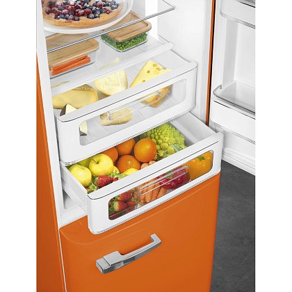 Холодильник SMEG FAB32ROR5 предназначен для кратковременного хранения различных готовых блюд, охлаждённых продуктов и напитков, а также для заморозки и длительного хранения замороженных продуктов и полуфабрикатов. Полки изготовлены из закалённого стекла, благодаря чему выдерживают большую нагрузку. Полки на дверцах выполнены из пластика. Данная модель идеально подойдёт для авторских интерьеров в уникальном стиле или для кухонь в классическом исполнении.