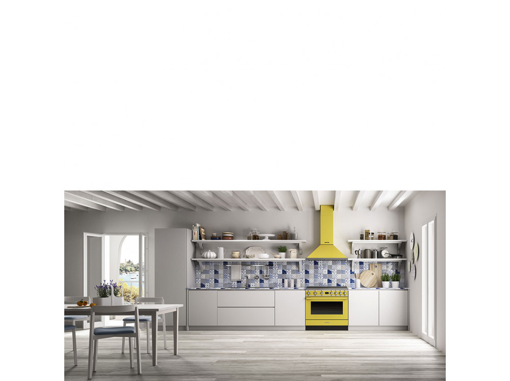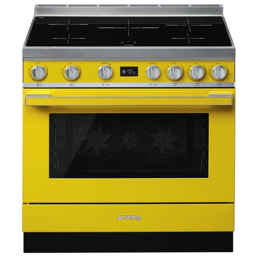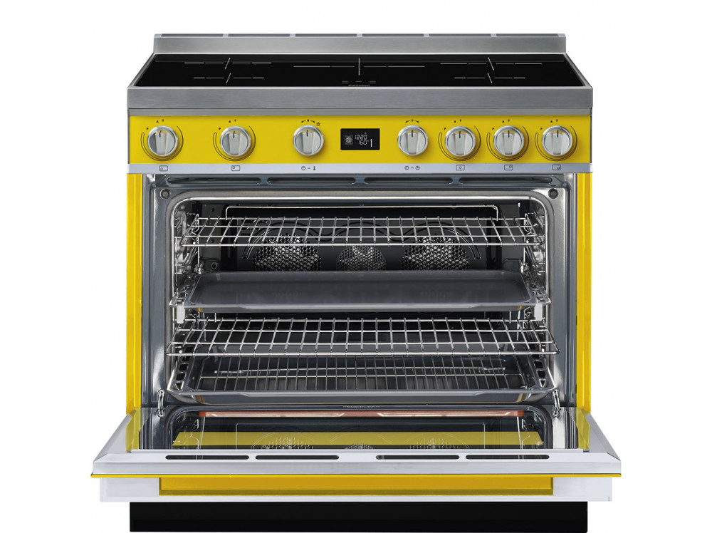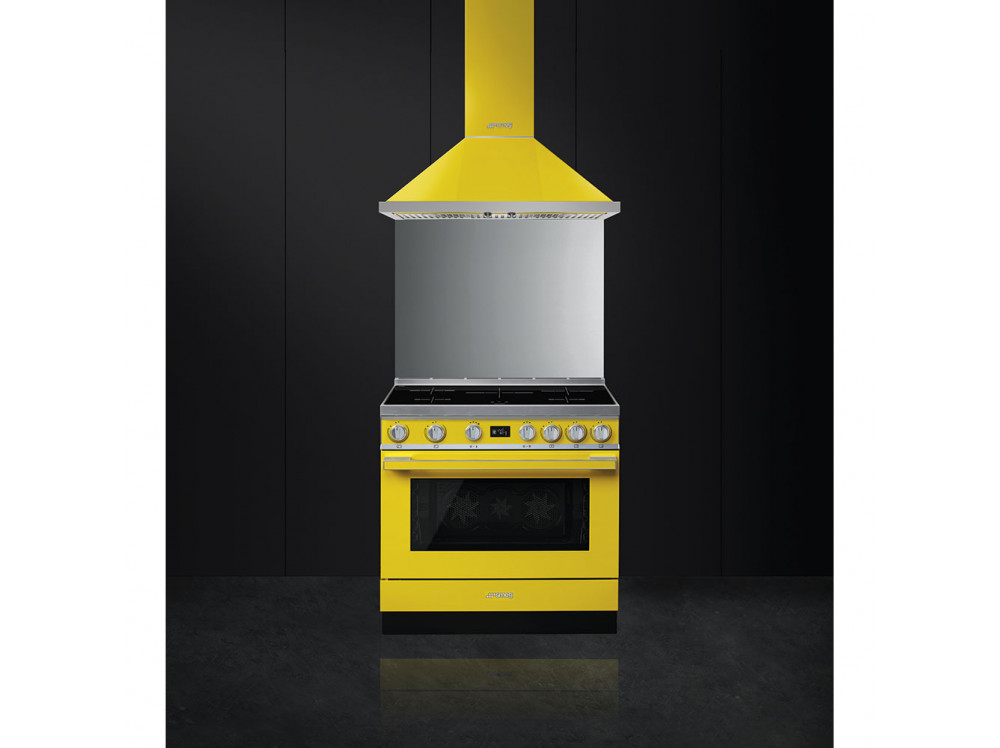 Варочный центр Smeg выполнен в желтом цвете и оснащен широким функционалом: с помощью 5 индукционных зон разной мощности и размера и 10 режимов нагрева можно подобрать оптимальные условия приготовления для любых продуктов; пиролитическая система очистки делает уход за камерой легким и быстрым. Управление с помощью поворотных переключателей облегчает настройку прибора и увеличивает комфорт эксплуатации — можно удобно выбрать программу или настроить температуру.