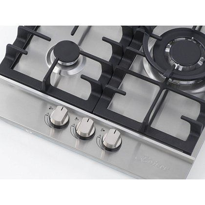 Большая конфорка вообще супер турбо мощная. Плита работает бесшумно, есть газконтроль.